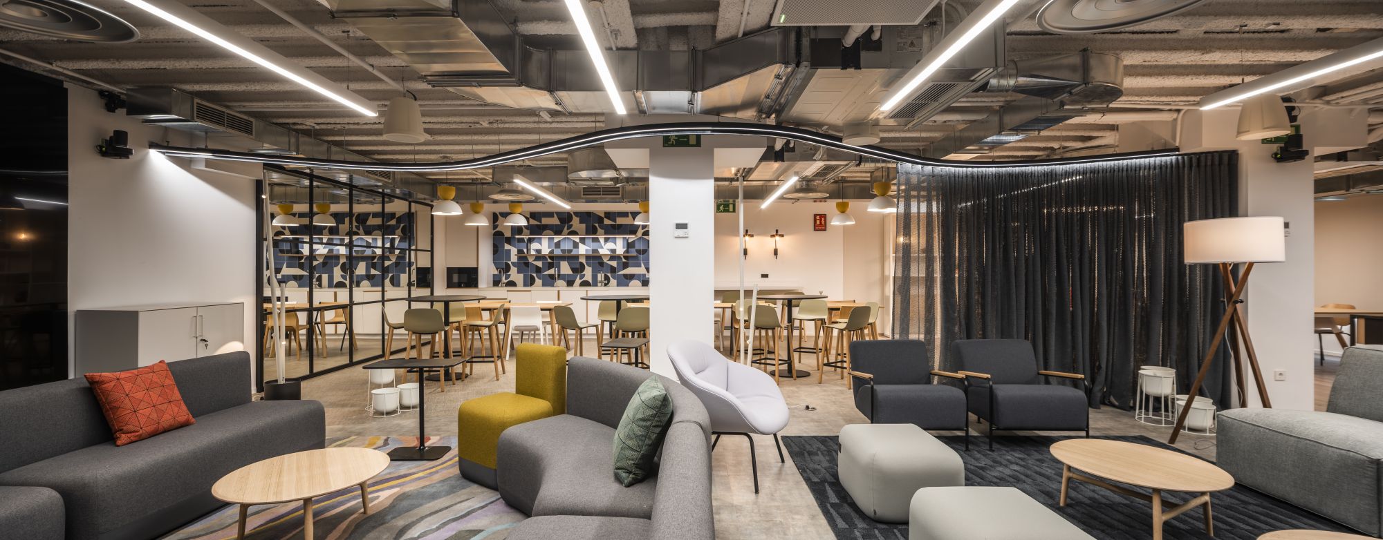 Cushman & Wakefield, a leader in real estate services, has collaborated with our team to carry out a major project in its facilities. The challenge was clear: to transform Floor 2 of the 2,200m² building into modern offices, incorporate a 200m² multi-purpose room called Hive, and completely renovate the access area, known as Front of House (FOH).