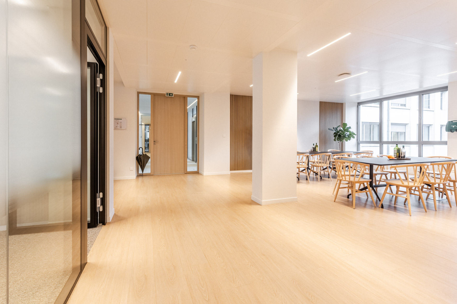 Le plateau, partiellement rénové par le bailleur, nécessitait une reprise complète des aménagements intérieurs pour accueillir les nouveaux usages du cabinet. Le concept architectural, conçu en amont par Knight Frank, a été déployé et concrétisé par les équipes Kardham en mission de contractant général.