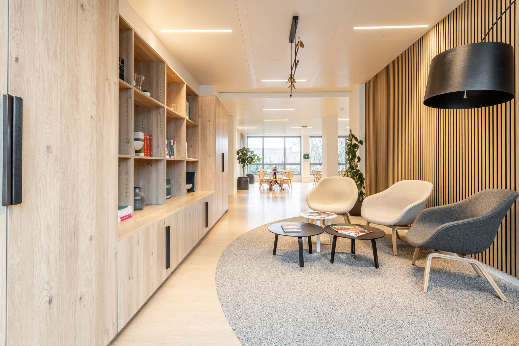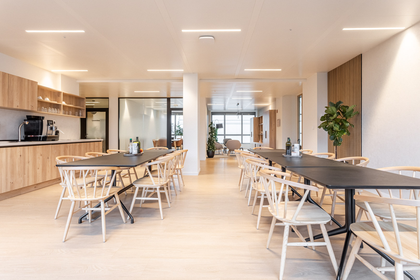 Kardham a assuré la gestion globale du chantier, pilotant l’ensemble des lots architecturaux et techniques : plâtrerie, cloisons modulaires, peinture, revêtements de sol, menuiseries sur mesure, ainsi que les installations électriques, CVC et plomberie.