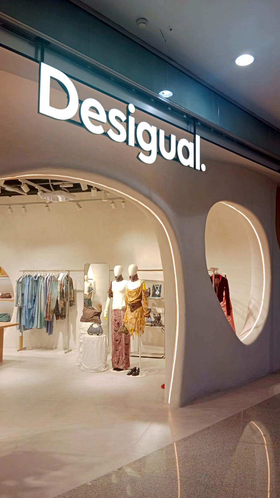 Nos équipes basées à Saragosse ont accompagné Desigual dans la réalisation de sa nouvelle boutique à l’aéroport de Palma de Majorque. Ce projet, d’une grande complexité technique en raison de son design innovant et des contraintes logistiques propres à un environnement aéroportuaire, a été livré dans le strict respect des délais fixés par le client.